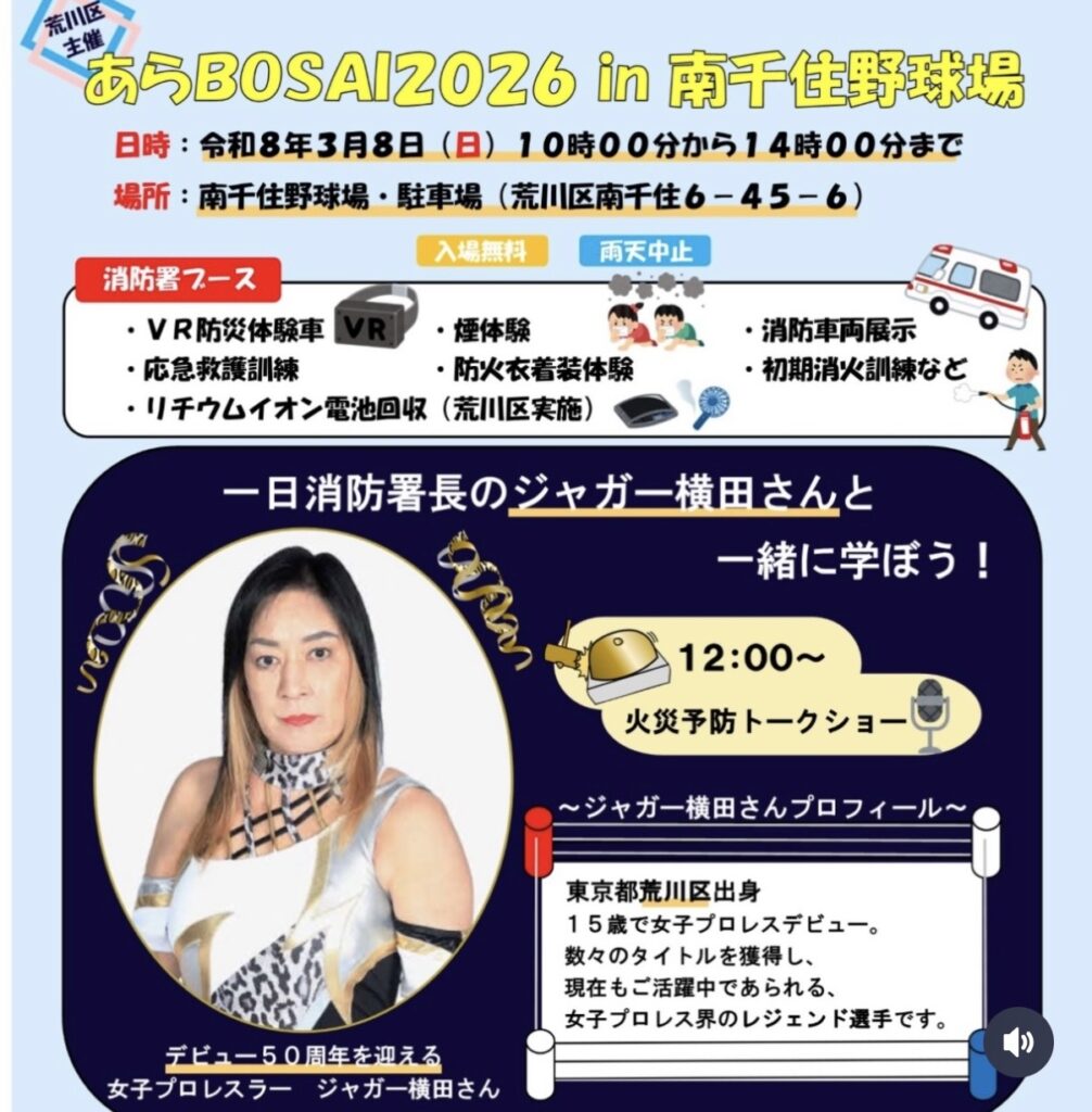3月8日(日)荒川区の防災イベントで、1日消防署長を務めます。